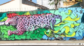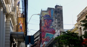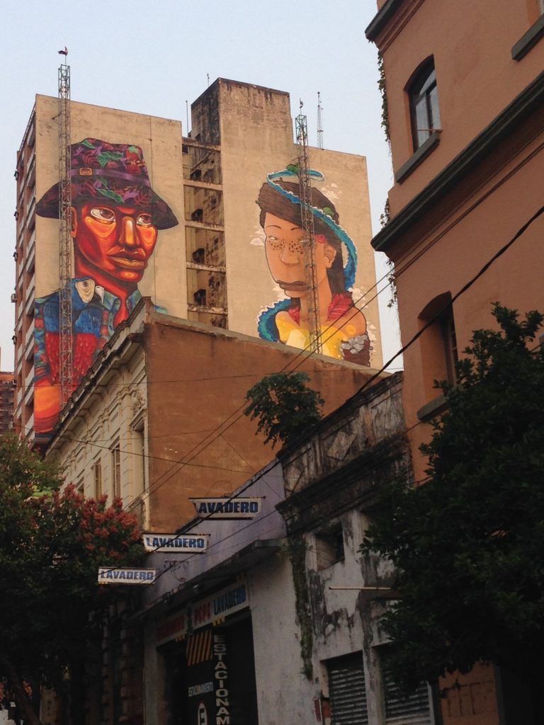 I first heard about the murals from my first Couchsurfing host in Asunción, Yobana, right upon my arrival. She told me about a map illustrating all the street art works in town and I was dying to see them. Soon thereafter, I visited the city center, spotting a large number of the paintings on my own and snapping some random pictures of them. Later the same week, me and my second Couchsurfing host César, went to his favorite bar Rockero (which, by the way, is a place definitely worth going to, if in town!), which is where I was introduced to Oz. (Something like: “Sissi the cyclist, meet Oz, the guy behind Latidoamericano and the most well-known graffiti artist in town.”)