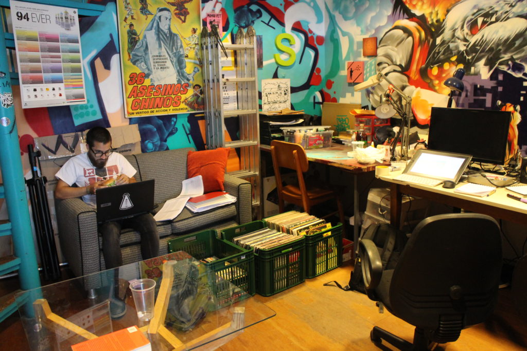 “In Paraguay, everything happens later than in other countries”, Oz Montanía begins with his calm voice, sitting comfortably on a red sofa in the backroom of his shop. “Whereas in Brazil street art existed already around 40 years ago, it didn’t land in Paraguay until more than 20 years later”, he continues and states that still in the 1980s, the only people who even knew such a thing existed, where the people who had lived or traveled in the US or Europe and had seen a part of this underground culture. “When I was 11-years-old, me and my friends would meet up in a skate park and exchange magazines and videos that we would then look at in awe”. Gladly, Oz’s parents owned a book distribution company, so reading about things came naturally for him. Hence, the small kid would suck up all the information he could find he could find from those worn-down magazines.