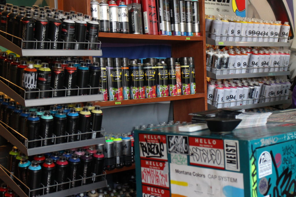 Another challenge was paint acquisition. Still only a year ago, there was no established place to buy quality paints in Paraguay. Not one single graffiti shop existed even in the capital city of Asunción and as done for the past 20 years, artists would smuggle paints across borders, mainly from Brazil. “We would use whatever means we could imagine”, Oz Montanía recalls and tells that sometimes paints were even brought into the country on small boats. “Just for personal use, not for selling, though”, he adds. Then, around 13 months ago, Oz’s shop, PowerLine was opened. “We started this shop with my business partner, Santo, who I met at a Meeting of Styles event in Buenos Aires many years ago. He had a shop in Buenos Aires, but when the economy of Argentina started going down, around four years ago he had the idea to start a second PowerLine in Montevideo, Uruguay. Then, a couple of years later, we started this one in Asunción.” Now, PowerLine is also an official distributor of the Spanish paint brand, Montana Colors, so it seems that the times of illegal smuggling are over. At least for Oz.