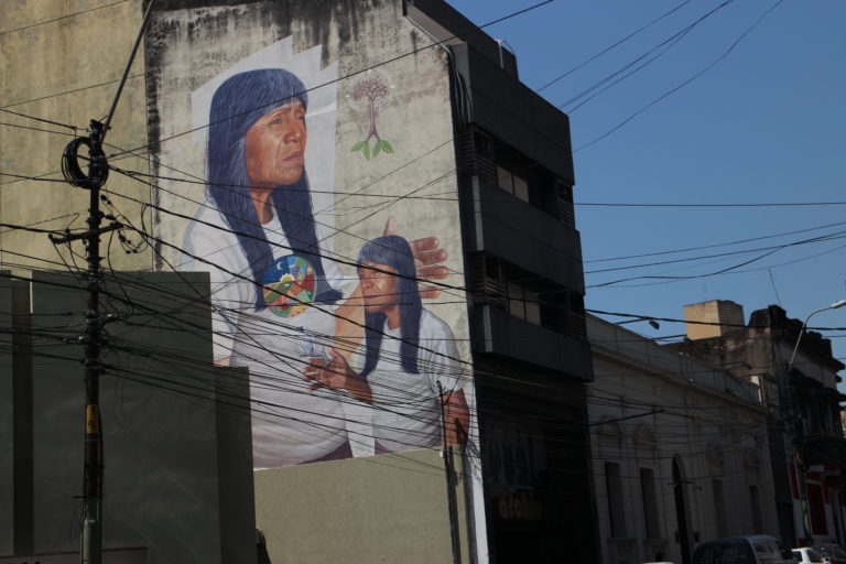 However, the approval of the Management was merely the start of all the work. In addition to 3,5 years of convincing, Oz scouted over 650 walls in the historic center, took photos of all of them, talked to influencers, contacted the artists and planned the theme of the event with them. It was decided that the theme would be: rediscovering Paraguay (Paraguay, pronounced with the last y gutural, is the original name of Asunción). After that, Carla Linares (who was in charge for the historic part of the project) searched for historic information about Asunción, although also the artists themselves did a lot of research before reaching Paraguay. “Only two of the 35 artists had been here before, so they were really curious about the place”, Oz tells. He recalls how most of the them would go through numerous books, museums and whatnot, not only back home but also immediately upon their arrival in Asunción. “These people don’t want to just paint something, they really want to contextualize their work”, he states. Many of them also changed their flights back home, because they fell in love with the country and its vibe. “People had very few expectations on this country, so when they were here, it was all like one big, positive surprise to them”, Oz says.