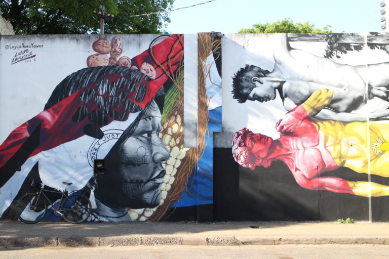 This year (2016) in August, Asunción was the first non-Peruvian city to host LatidoAmericano, a Latin American festival for urban art. The curators of the event were Oz and Peruvian artist Entes, but how did it all start? “In 2011 I met Entes and Pésimo, two Peruvian graffiti artists who belong to the same crew as me, the DMJC (one of the oldest crews in Peru with around 35 members), at an urban art event”, Oz begins. “We painted side-by-side and got into talking about the lack of a more Latin American, native event”, he continues. By that time, they had all attended various street art events around the World, but the dominance in all of them was always either European or North American, which didn’t go hand-in-hand with what they wanted to do. “The main difference with the European and US artists is that they’re all very individualistic”, Oz says. “For them it’s more of a personal process, whereas for us it’s much more collective”, he explains. According to Oz, with Latin Americans there’s no need to agree on what kind of murals to do, as they’re simply born on their own.