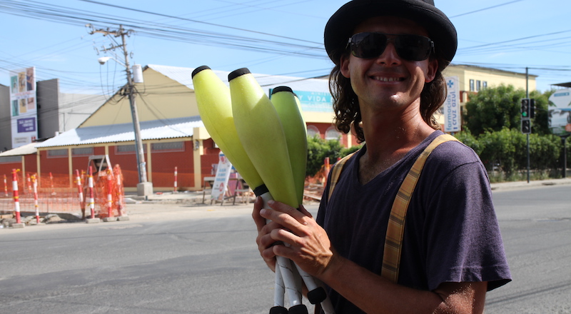 The first time I ever tried it out was after a juggling exchange workshop. Me and my friends wanted to buy ice cream and were short of cash. So, we decided to juggle at streets lights for a while to earn our ice creams. Surprisingly enough, it worked out. After that, I didn’t used to juggle at street lights back home, but after moving to Quito, I got back to it again out of necessity. I need to earn a living somehow and jugglers call streetlights a certain cash machine, because it’s an easy way to earn money.